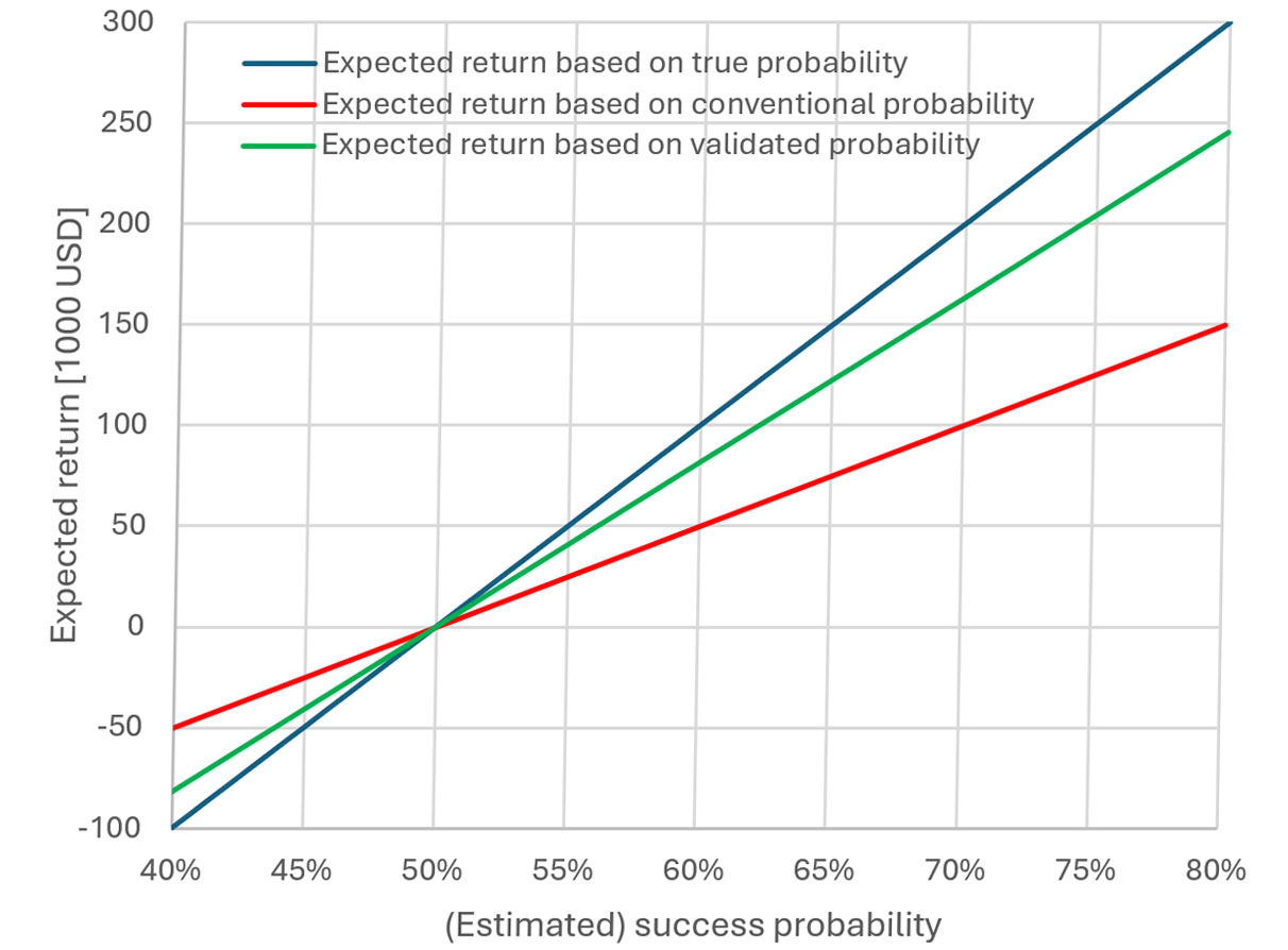 The application of validated probabilities can considerably improve decision-making in the funding stage by mitigating the risk of poor choices.